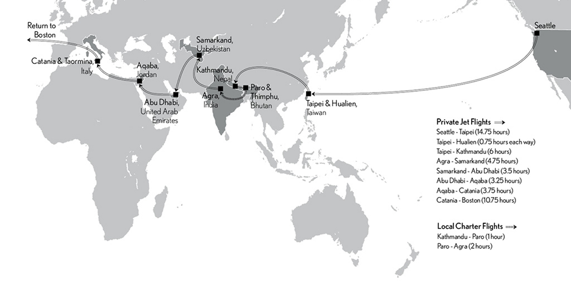 Abercrombie & Kent has introduced a new eight-country, 23-day air itinerary across the northern hemisphere that will explore Taiwan, Nepal, Bhutan, India, Uzbekistan, UAE, Jordan and Italy.