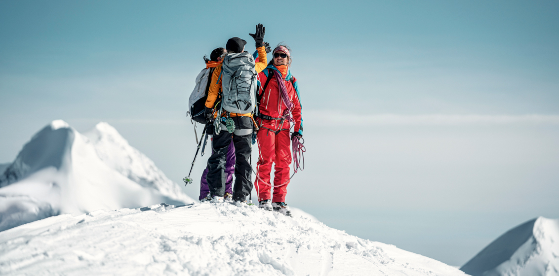 The first group of mountaineers already finished their expedition on 11 March. Three athletes Chemmy Alcott (UK), Johanna Ratschiller (Italy) and Caja Schöpf (Germany), together with mountain guides and Mammut Pro Team Athletes Caro North (Switzerland) and Nadine Wallner (Austria), climbed the three 4000 metre peaks Allalinhorn, Alphubel and Strahlhorn in the canton of Valais successfully.