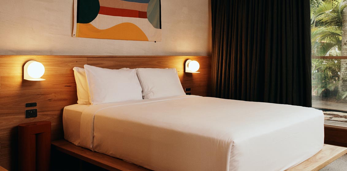 Set within a tropical garden, The Sunseeker opened at the end of 2020. The reimagined former motel, positioned on the main drag leading into town, is a short distance from the world-famous beaches of Byron Bay, and the hustle and bustle of the town centre.