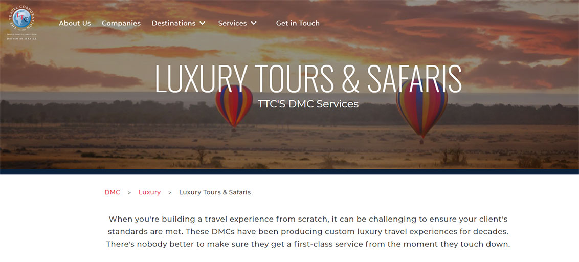 TTC’s solutions span culturally immersive escorted travel, river cruising and day tours, to bespoke features such as custom groups, yachts and small ship cruising, safari operations, meetings, conferences and events, self-drive and rail journeys, private chauffeurs and small groups and specialist trips