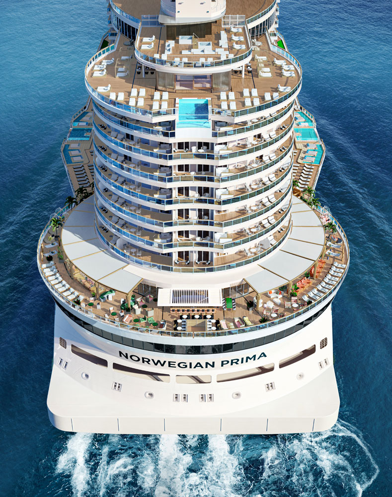 Norwegian Prima‘s sister-ships will be delivered annually between May 2023 and June 2027, increasing NCL’s total fleet number from the current 17 to 23.
