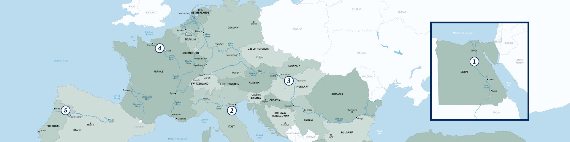Rivers that will be explored on the itinerary include the Nile, Po, Venice Lagoon, Danube, Seine and the Douro.