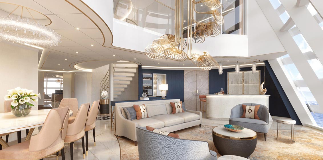 Disney Cruise Line has revealed a new “penthouse in the sky” suite set within one of the two funnels of its new ship, Disney Wish.