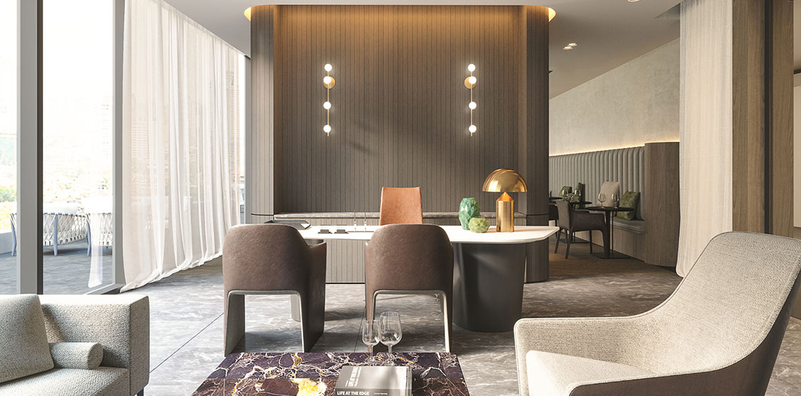 Residential styling elements in the M Club include a combination of timber and marble, a library for quiet reading and contemplation, communal dining tables and secluded spaces for solo travellers.