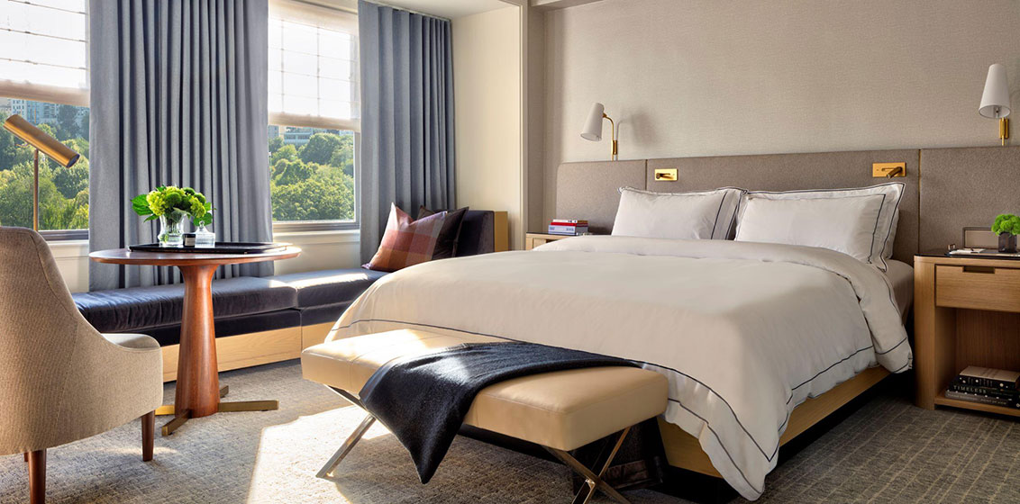Heritage architecture and residential comfort envelop each guestroom and suite at The Newbury Boston. Designed by acclaimed interior design firm Champalimaud Design, each room and suite incorporate a calming colour palette and tactile materials that are contemporary, yet reflective of the tailored Bostonian aesthetic. Layering upon stunning stylistic elements of handcrafted wood, herringbone accents, and marble touches that further add a sense of lavish materiality and craftsmanship, rooms are appointed with hand-selected, richly textured furnishings and original artwork, along with luxury amenities exclusively curated for guests.