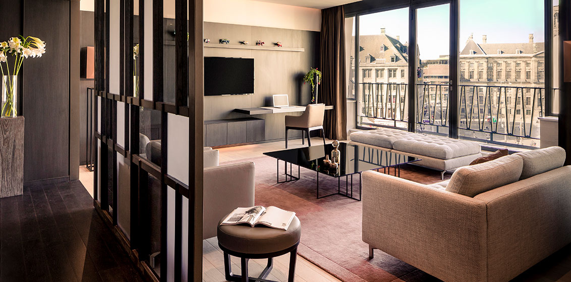 The 100-square-metre two-bedroom Presidential Suite provides ample room for family or friends travelling together. Alternatively, the Royal Suite, overlooking the Royal Palace of Amsterdam, offers 150 square-metres of luxury facilities and amenities which will make guests feel like royalty.