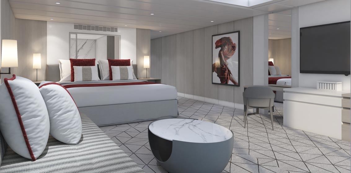 New for the brand on Celebrity Beyond are AquaClass SkySuites, an immersive living experience with floor-to-ceiling ocean views, private verandas, luxurious bedding and other wellness amenities, designed by multi-award winning designer Kelly Hoppen CBE.