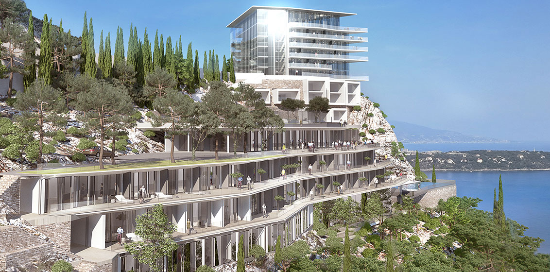 Set within a rocky peninsula overlooking the French town of Roquebrune-Cap-Martin, the location is famed for its rich art and cultural heritage, the modernist hotel is forecast to become the new hospitality jewel of the French Riviera, offering dramatic panoramic views of the coastline that take in Cap-Martin and Italy to the west and Monte Carlo to the east.