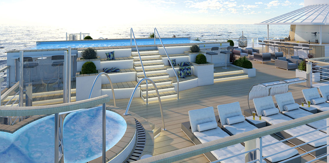 Ocean Discoverer will boast an aft-facing infinity pool, jacuzzi, two restaurants, a panoramic observation lounge overlooking the bow, library, fitness centre and spa, piano bar and 93 luxury staterooms – all with ocean views and the majority with private balconies.
