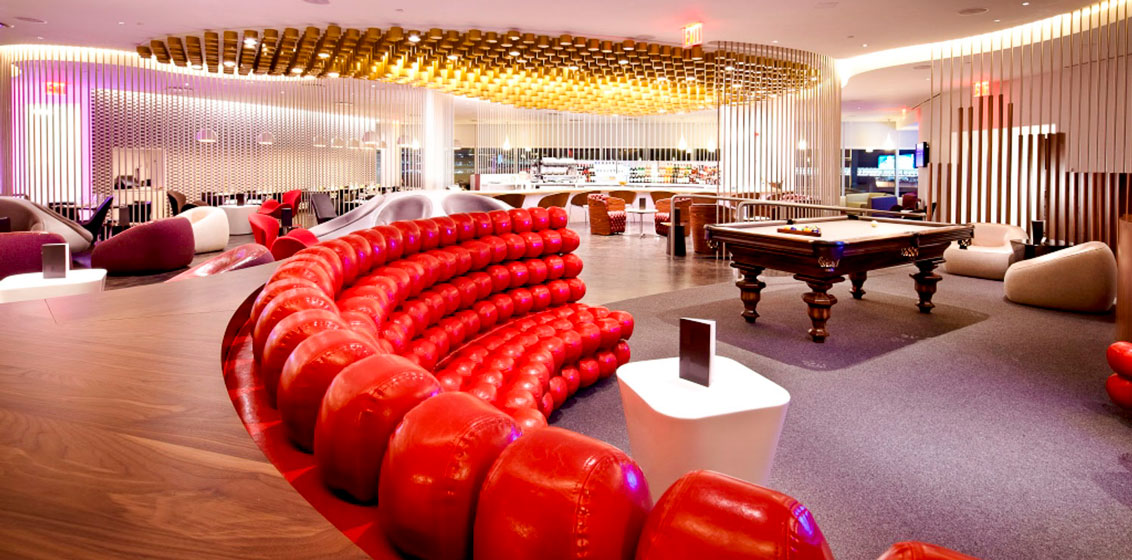 Lead image: The iconic sofa – Virgin Atlantic Clubhouse at New York JFK