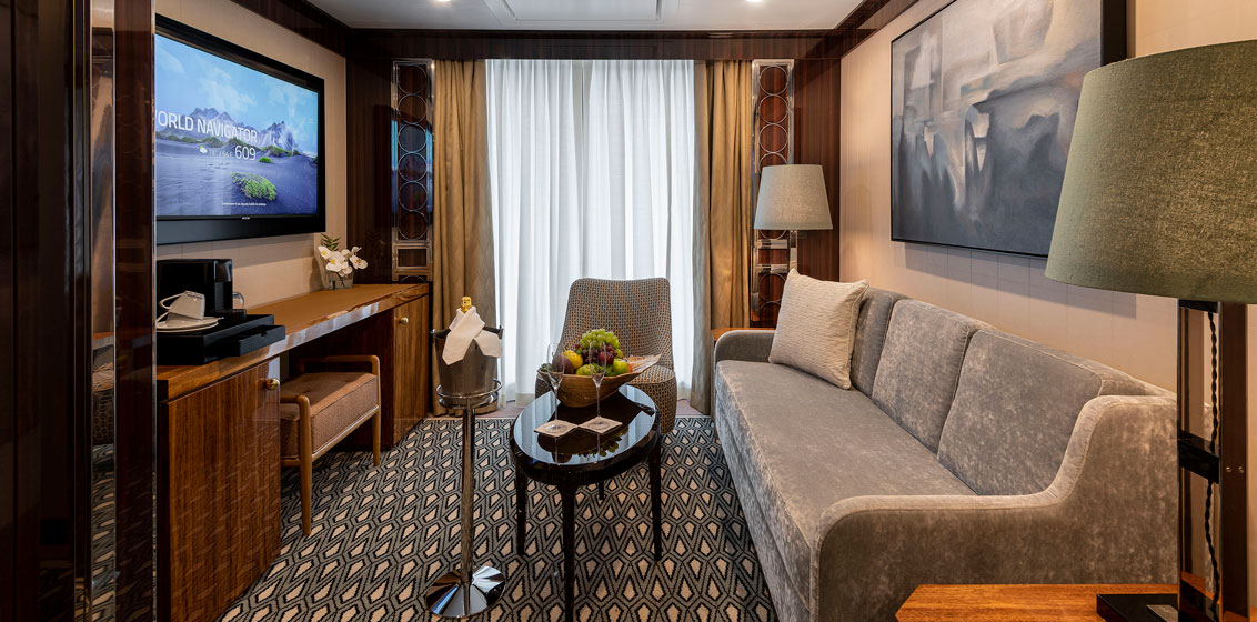 Appointed with retro-chic elegance, World Navigator offers 98 suites and staterooms, ranging from the 17 square-metre Adventure Staterooms to the ship’s signature one-bedroom, 43 square-metre Navigator Suite. All suites and staterooms are infused with European sophistication; incorporate modern technological conveniences; and include a stocked mini-refrigerator; L’OCCITANE bath amenities; slippers, robes, and binoculars; Nespresso coffee; teas; and personalised bar service, and butler service in suites.