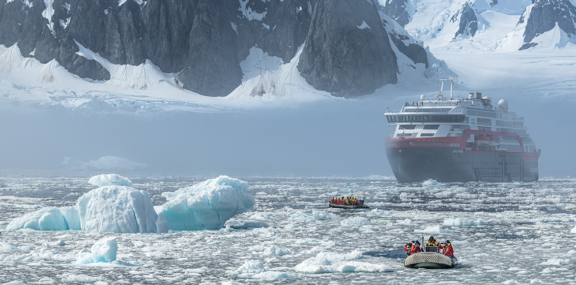 This is one of Hurtigruten Expeditions’ longest expeditions in Antarctica, departing at the peak of summer and with an attempt to sail below the Antarctic Circle to try to reach the usually secluded yet magnificent Marguerite Bay. Return flights from Australia or New Zealand can also be packaged.