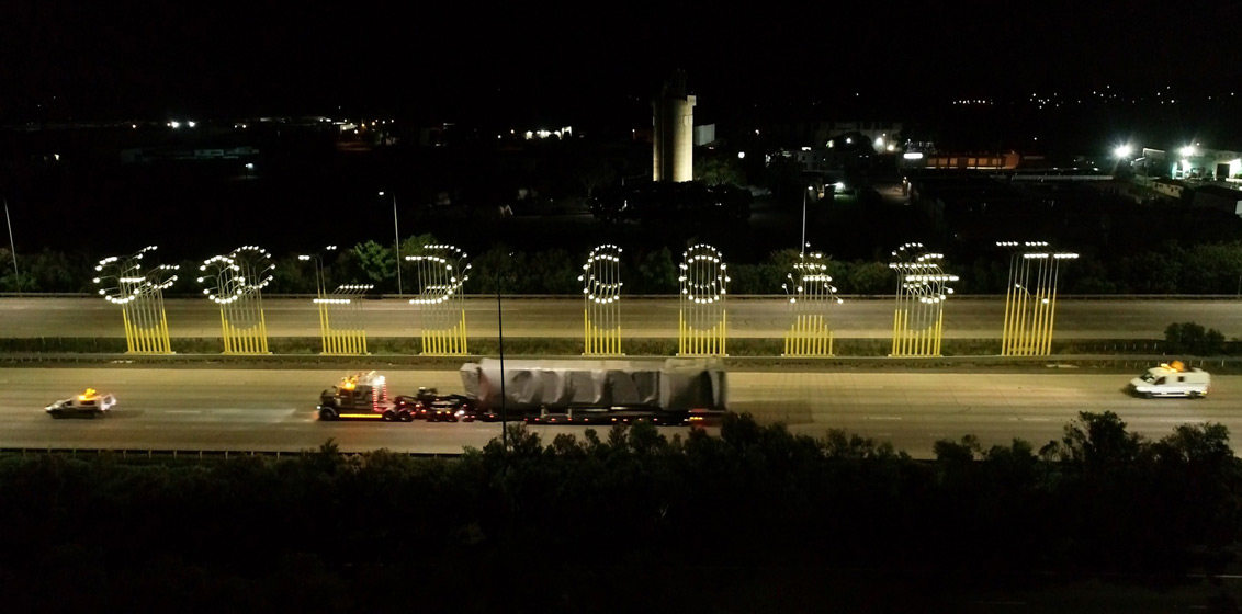 Each weighs 31 tonnes and measure 22 metres when they arrived, extending to 40 metres when in place.