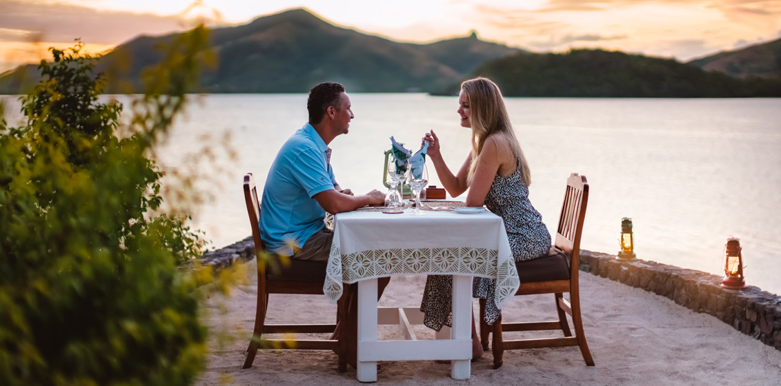 The dining experience has always been front and centre for Turtle Island with guests able to enjoy fresh farm- and sea-to-table shared dining in outstanding locations including the front beach, the garden and the mountain top. Private dining is also available on the pontoons where your meal is delivered by boat, at the end of the lantern-lit jetty, at Cliff Point with a saltwater plunge pool, and on the pristine private beaches.