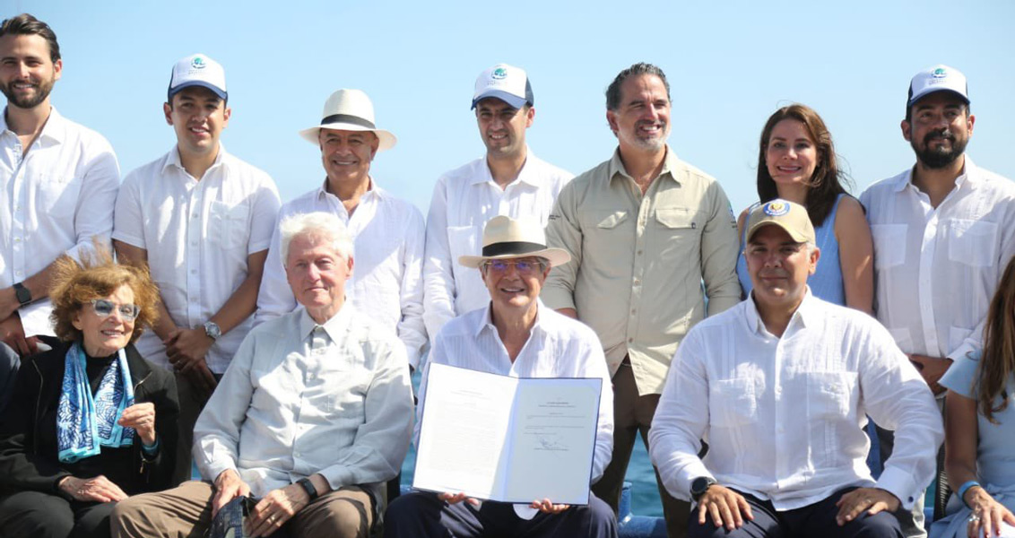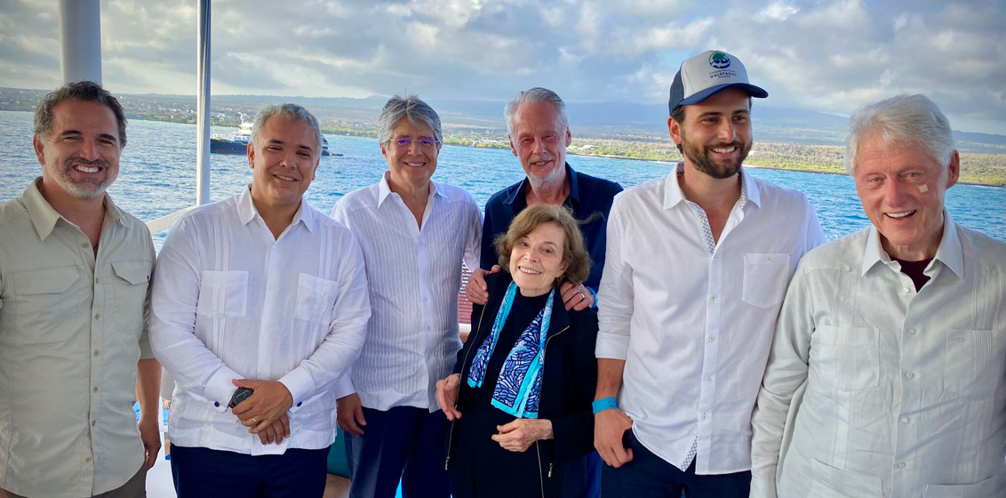 Lead image source: From left: Ecuador’s Environment Minister, Gustavo Manrique; Colombia’s President Ivan Duque; Ecuador’s President Guillermo Lasso; Sven Lindblad, founder Lindblad Expeditions; Dr Sylvia Earle; Niels Olsen, Ecuador’s Tourism Minister; and former US President, Bill Clinton | Source: Lindblad Expeditions