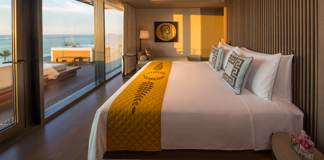 Although branches of both Hamley’s, for the latest toys, and Madame Tussauds, with its realistic waxworks, are under five minutes’ walk away, this is a hotel for staying put. Why bother to go off-campus? There’s a great spa, a Havana Cuba cigar lounge, and memorable food. Demon Duck is Hong Kong’s sensation Alvin Leung doing sexy Asian. Gordon Ramsay, at Hell’s Kitchen, does, well, ‘Gordon’ – try his perfectly-aged Australian Wagyu as you dine outside, under splendid greenery with highly agreeable background vibes from the DJ at nearby Cove Beach, which packs in Dubai’s top influencers, plus Gen-Ys and youthful Millennials. After dinner, join in the fun, cavorting like a Caesar on one of the best beaches in Dubai.