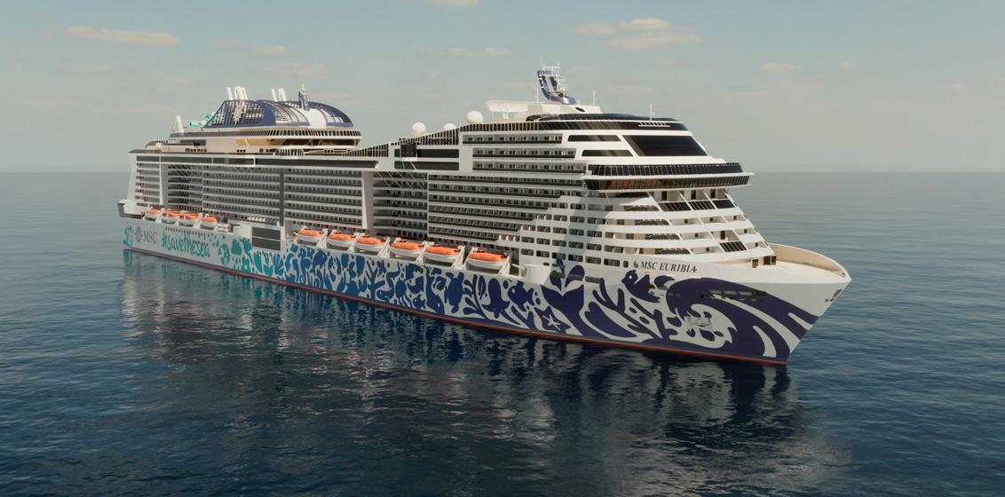 As bio and synthetic fuels become available, MSC Euribia’s emissions will be further reduced. LNG is key to the development of low carbon solutions for shipping as emerging technologies such as fuel cells can be operated with LNG until zero emissions bio-LNG or green hydrogen become available at scale. MSC Cruises is actively involved in several projects to develop and make these technologies viable in partnership with regulators, academia, shipyards and industry.MSC Euribia‘s hull will be a standout in the Meraviglia-Plus class, thanks to an exclusive artwork designed as a commitment by MSC Cruises to the sea. The line held an exclusive international design competition to create a unique artwork, inspired by the sea and its important marine ecosystem. The design will be featured permanently on the ship’s hull, highlighting the steps that the Company is taking towards a greener future.