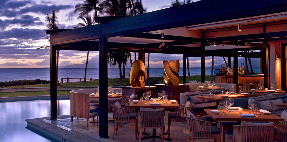 A modern Japanese beach house inspired the design concept for Morimoto Maui. With uninterrupted 180-degree beach and ocean vistas are offered from nearly every seat in the restaurant and bar, further connecting guests to their environment through an intimate, relaxing experience. Chef Masaharu Morimoto uses locally sourced ingredients in a distinct culinary style that blends Western and Japanese traditions.