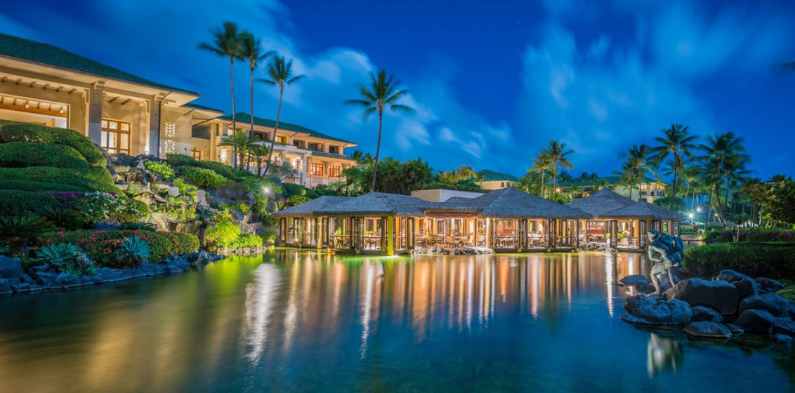 Modern Hawaiian cuisine meets a traditional Hawai‘i setting at Tidepools. Open-air hale pili (thatched bungalows) set at the base of a waterfall seemingly float above a koi-filled lagoon creating distinctive dining. Inspired by the natural ingredients and rich traditions of the islands, the tantalising menu pays homage to classic fare of Hawai‘i while creating fresh new tastes. Here you will find the freshest of fish and steak dishes, unbeatable ambiance and exceptional service. Rated one of the best restaurants on Kaua‘i, Tidepools will dazzle you with dishes like Grilled Hawaiian Catch, Macadamia Crusted Mahi or succulent steaks. Salads feature fresh greens straight from the on-site hydroponic garden.