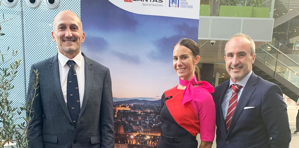 Lead image: Emanuele Attanasio, Italian National Tourist Board with John Simone, Senior Vice President International Sales, Qantas, and Qantas crew member, Belinda.