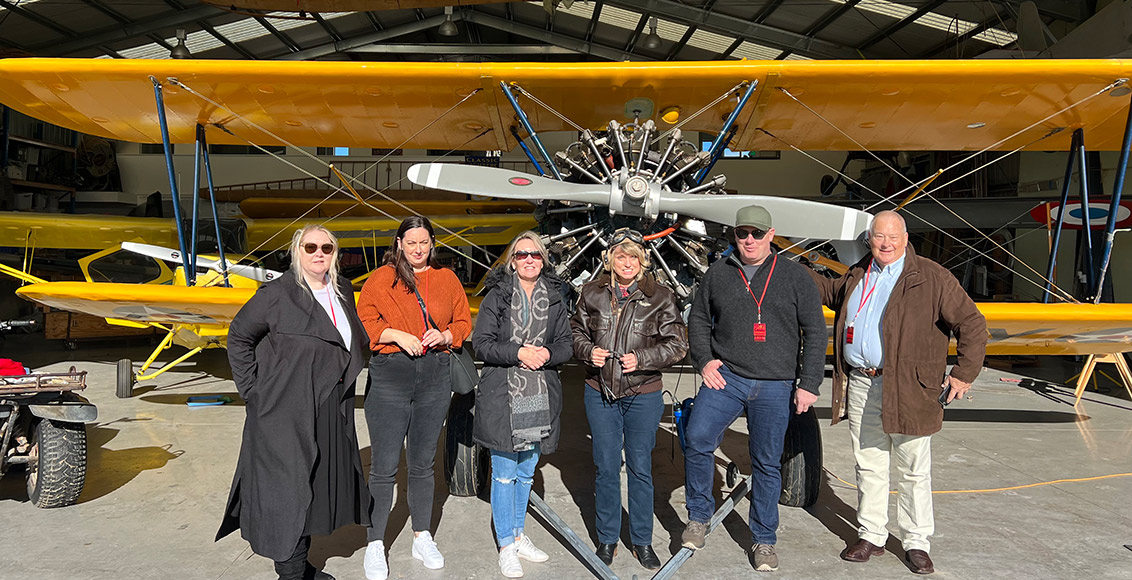 Lead image: Private hangar tour at Omaka Aviation Heritage Museum. The Australian delegation included (from left): Siobhan Jensen, Event Manager ICMS; Emma Richardson, Power2Motivate; Michelle Oliver, The Incentive Lab; Leona Watson, Leadership Adventures & Speaking; David Weir, Unleashed Experiences and Brian Challinor, gener8 events.