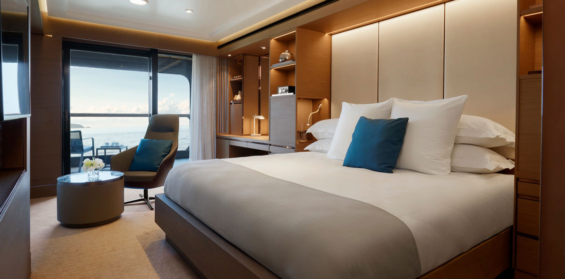 Evrima is the first of three vessels being built under the brand name synonymous with Marriott’s top-of-the-line hotels and resorts chain. The Ritz-Carlton Yacht Collection’s second and third ships, Ilma and Luminara, are being constructed by Chantiers de l’Atlantique, in France, and will launch in 2024 and 2025.