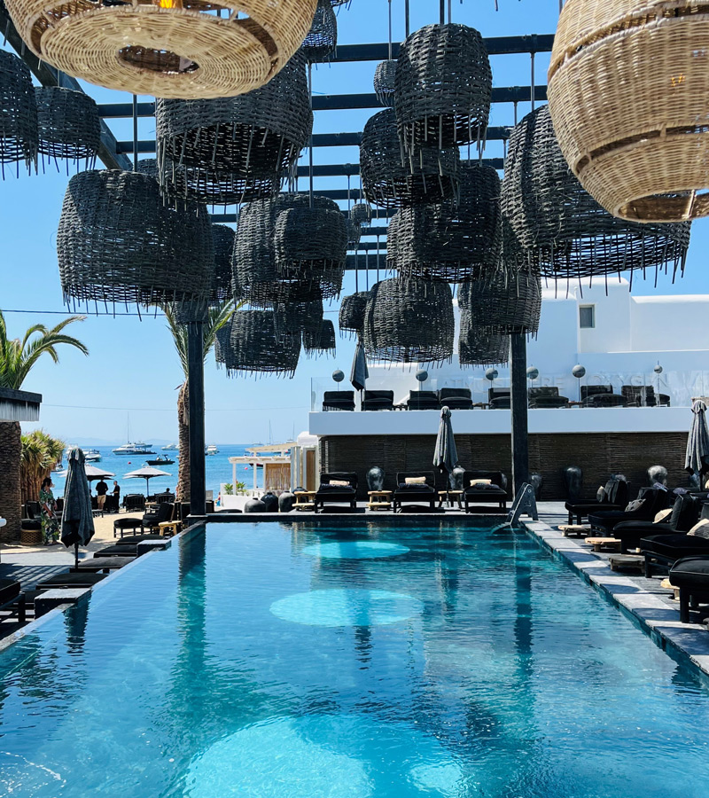 “O”, as it is being referred to, is a supremely stylish, luxury beachfront resort, at the heart of all that is great about Mykonos. Direct and private access to the fine sand of Ornos Bay, famously close to Mykonos town, sheltered from all but a gentle breeze on the ‘island of winds’. Guests will love being a step away from some of the best waterfront bars, restaurants and water-sports concessions.