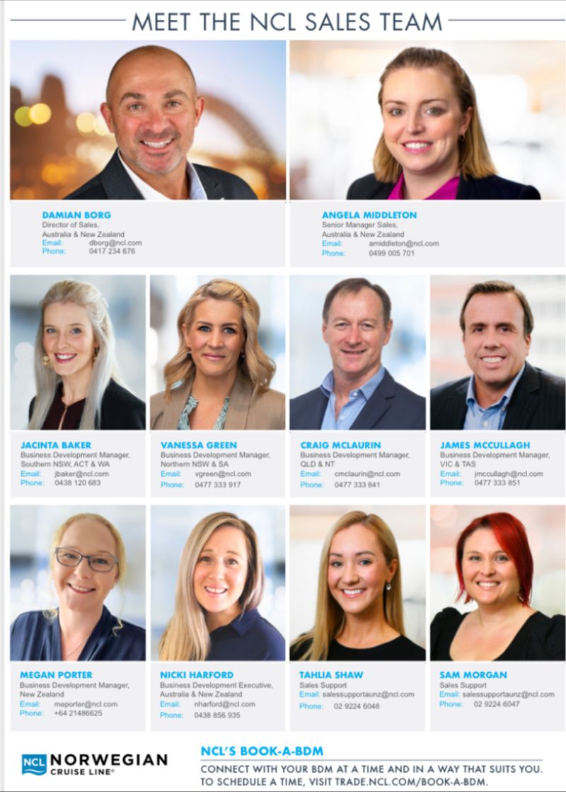 For further information on Norwegian Cruise Line email salessupportaunz@ncl.com.