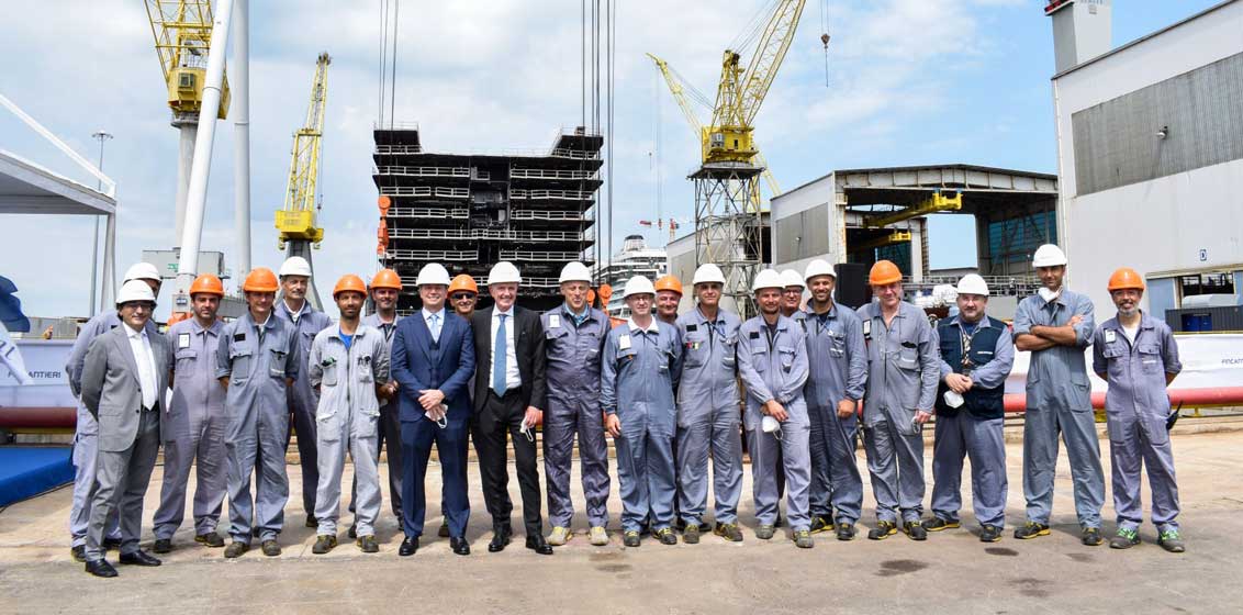 Regent Seven Seas Cruises leadership team were joined by members of Fincantieri to formally place one of the vessel’s building blocks.