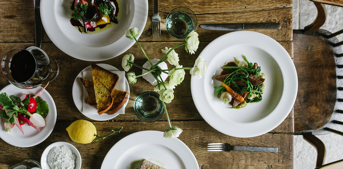 Marle’s menu changes daily, depending on what gardeners have brought in from Heckfield’s own farm. Typical choices could include Warm crab with n’duja butter and wholegrain polenta, and Pork fillet with gooseberries and farm fennel. Yes, there are Berkshire Pigs down on the farm, as well as Aberdeen Angus cattle, Guernsey cows and sheep and every edible green you have ever heard of. Go and visit.