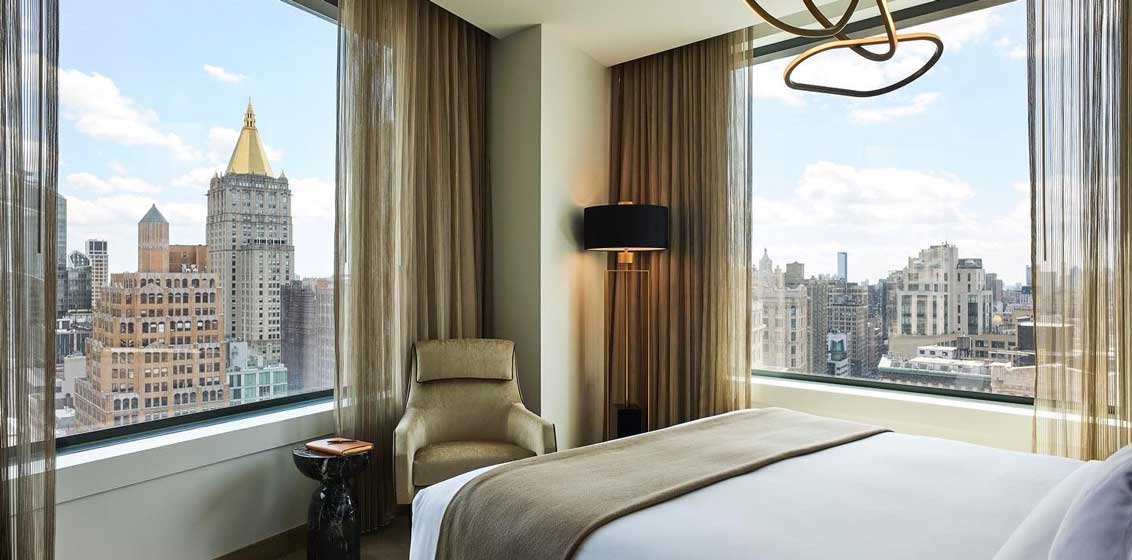 The five-star property soars 50 stories above the North of Madison Square Park neighbourhood and features 250 rooms and suites, with an additional 16 one- and two-bedroom penthouse residences. Inspired by residential-style living, guestrooms feature bespoke furnishings and a neutral colour palette that allow the expansive, light-filled living spaces and stunning city views to take centre stage.