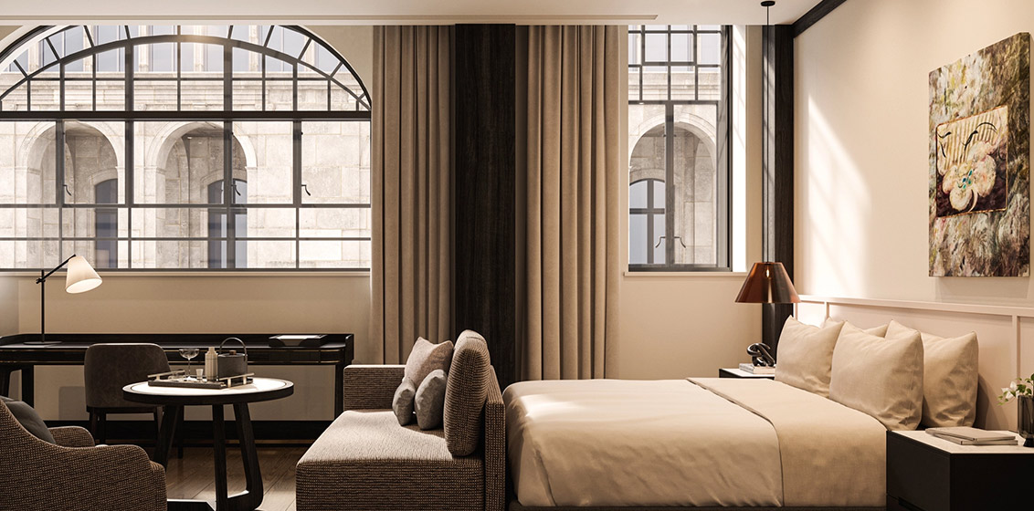 All guest rooms feature high ceilings and offer a sense of calm with muted tones and a neutral colour palette as well as an abundance of natural light. Opulent and oversized bathrooms comprise of double vanities, rain showers with most also including deep soaking stand-alone bathtubs. Intuitive in-room technology will be integrated within the historical fabric of the hotel, enhancing the overall guest experience.