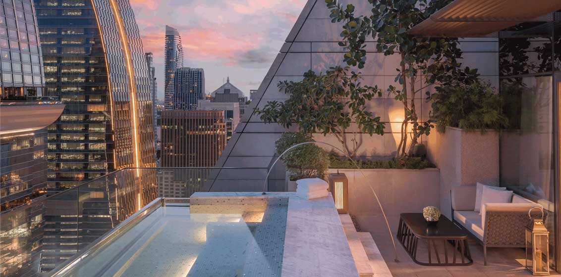 The new houses feature expansive high-rise outdoor terraces with private plunge pools, state-of-the art wellness facilities and uninterrupted views of the skyline and lush nearby parks from floor-to-ceiling windows. The hotel’s largest accommodations are the luxury residence-style houses: Nara House, Thara House and the Bannakarn House.