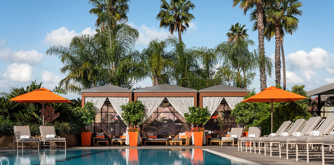 Venture to the real world. At the end of the fourth floor corridor, the spa awaits. Take ten steps down to the bright nasturtium sunshades and five cabanas of the outside pool, where those moguls broker deals. See a whole world of decision-makers, too, at breakfast down on the ground floor, inside or outside at Culina, Ristorante or Caffè. Servers, impeccably discreet after years of performing with celebs, may suggest a CA Tonic and Elixir, perhaps Muscle Power, almond butter, banana, almond milk, cocoa nibs, honey. Stay local with an LA Omelet, egg white, baby kale, quinoa, avocado, and dairy-free mozzarella.