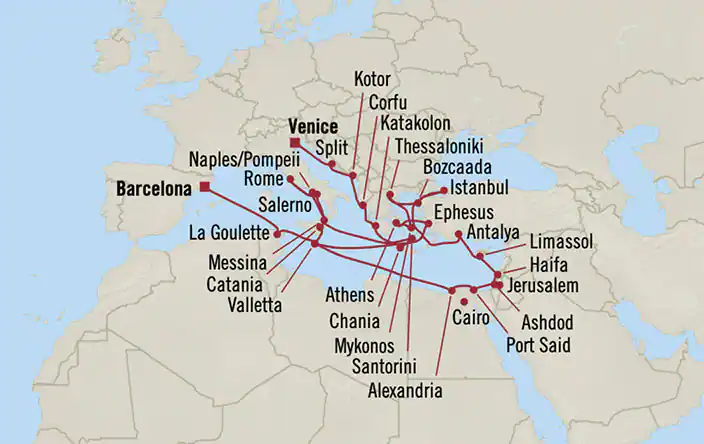 - Seas of Revelation | Rome to Barcelona | 23 days, departing 21 October