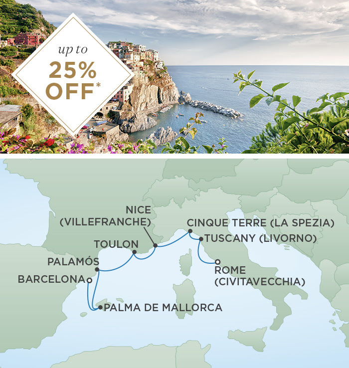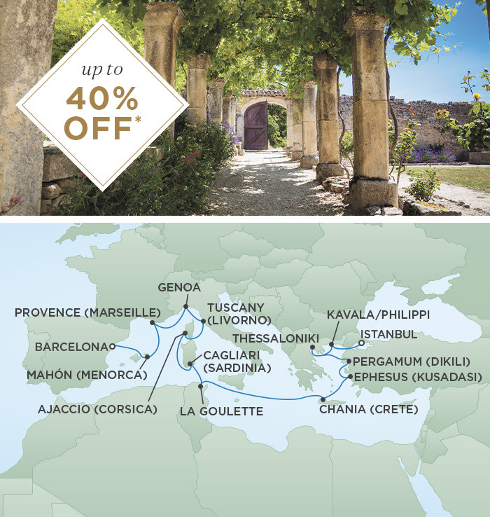 Witness the glories of antiquity while exploring ancient cities. Stand in awe of the world’s greatest paintings and sculptures from Michelangelo’s masterpieces in Rome and Gaudi’s public works in Barcelona to the ambiance of the artists’ colony of Pont-Aven. With the hallmark inclusion of Unlimited Shore Excursions, you can fully immerse yourself in the glories of the Mediterranean.