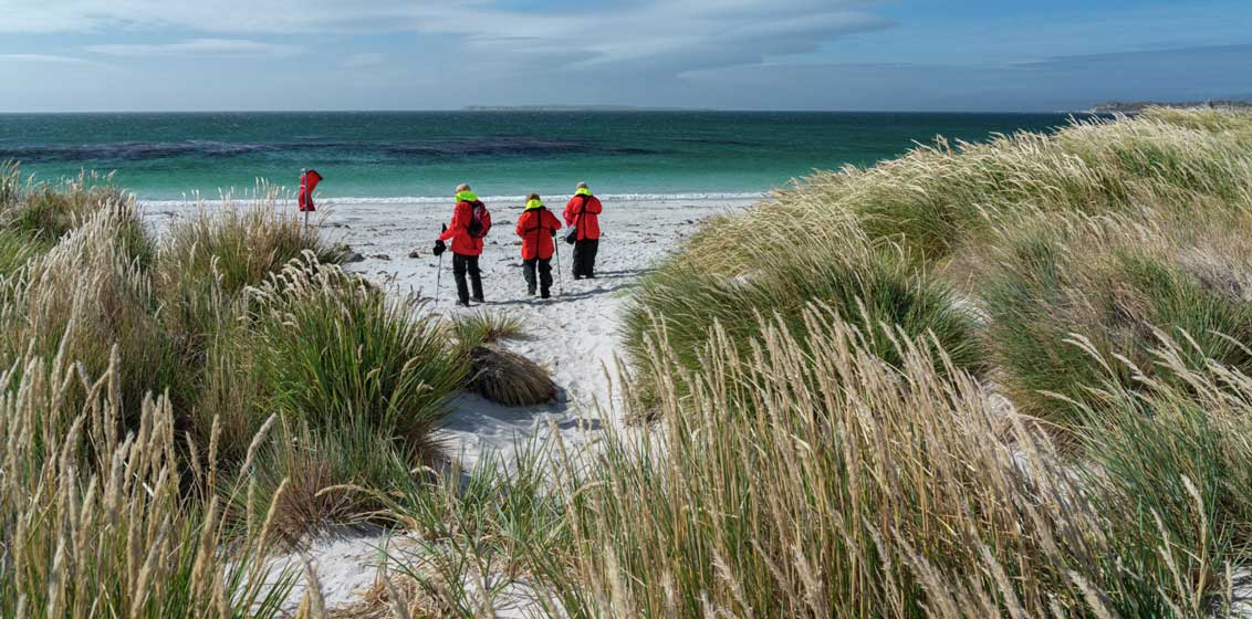 On this 18-day expedition aboard MS Roald Amundsen, guests will explore Antarctica’s pristine landscape, gazing at giant icebergs and the multitude of wildlife such as whales, penguins, and seals. Next, visit the far-flung Falkland Islands and experience the grassy hills, blooming wildflowers, stunning white-sand beaches and turquoise waters – along with thousands of penguins!