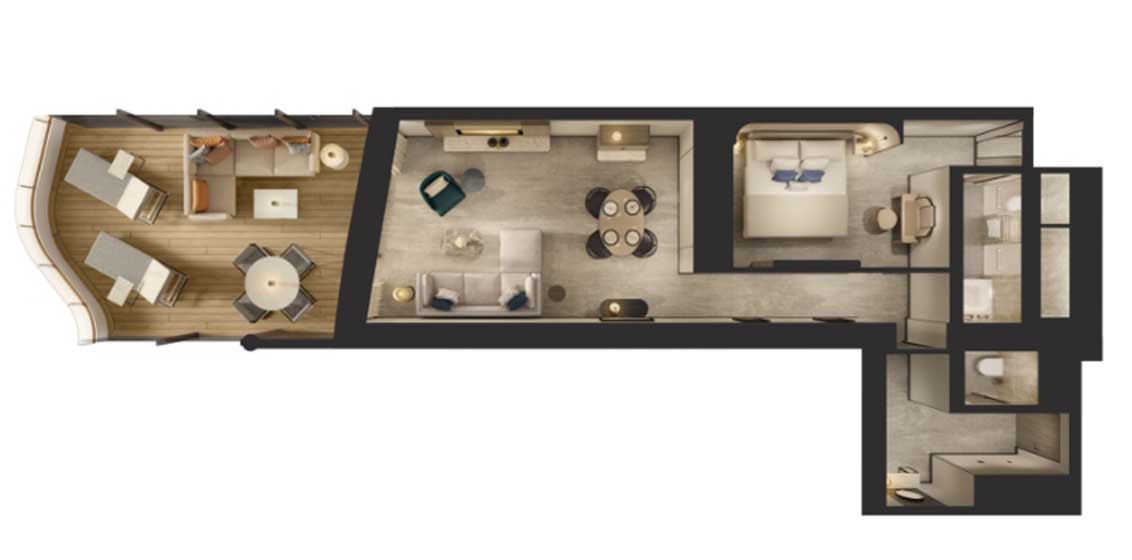 Ilma – which translates to “water” in Maltese and pays homage to the sea – will measure feature 228 suites, each with their own private terrace. Accommodating up to 456 guests, RCYC says Ilma will offer one of the highest space ratios at sea and a significant percentage of larger suites, with two new, spacious upper suite categories measuring more than 1,000 square feet in size.