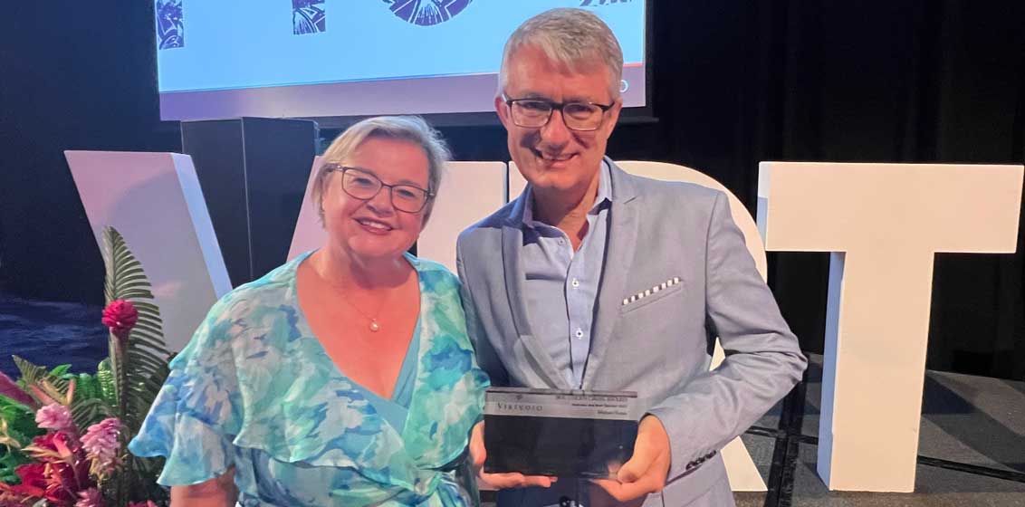 Virtuoso celebrated the 30+ year career of one of its finest owner managers during the AU/NZ Forum this week in Fiji, bestowing its Southern Cross Award upon a shell-shocked Michael Nolan of Bayview Travel.