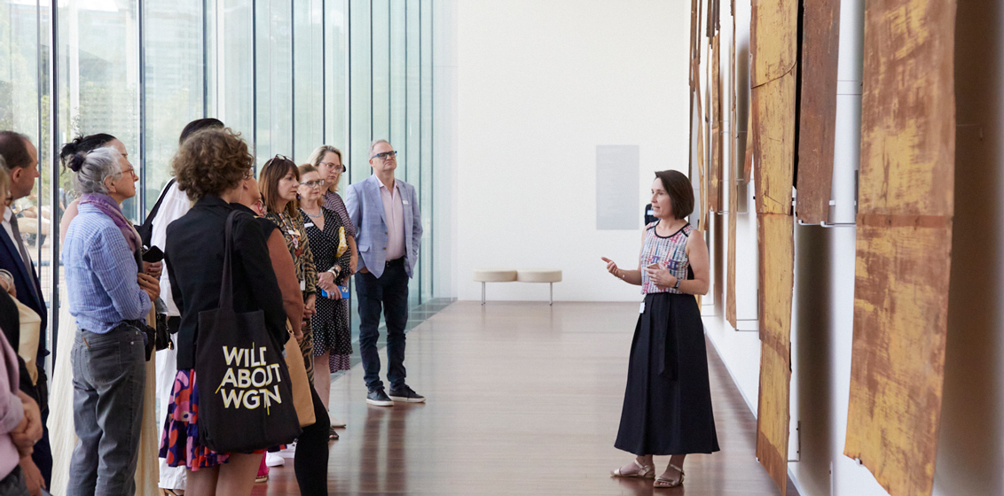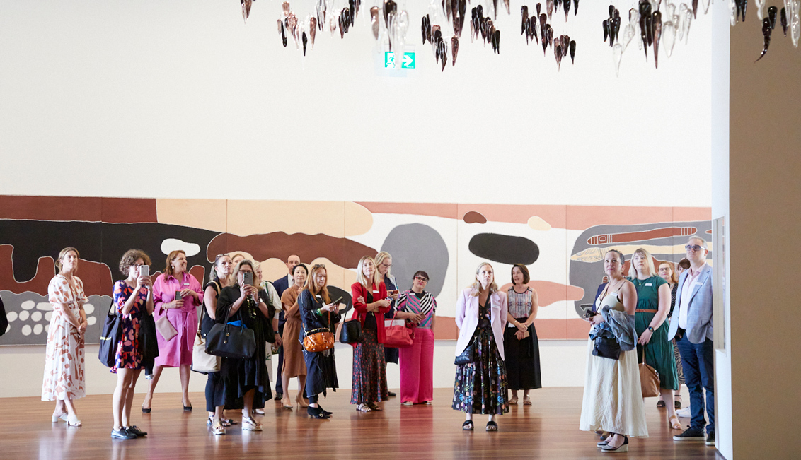 Media friends and members of the collective including Rachael Hammond, Art Gallery of New South Wales; Andrew Guy, Opera Australia; Jane Zantuck, National Gallery of Victoria; Roz Pixley, Sydney Opera House and Hyewon Chang, Australian National Maritime Museum, were first led on an inspiring tour of the Art Gallery of New South Wales Yiribana Gallery by Cara Pinchbeck, Senior Curator of Aboriginal and Torres Strait Island Art.