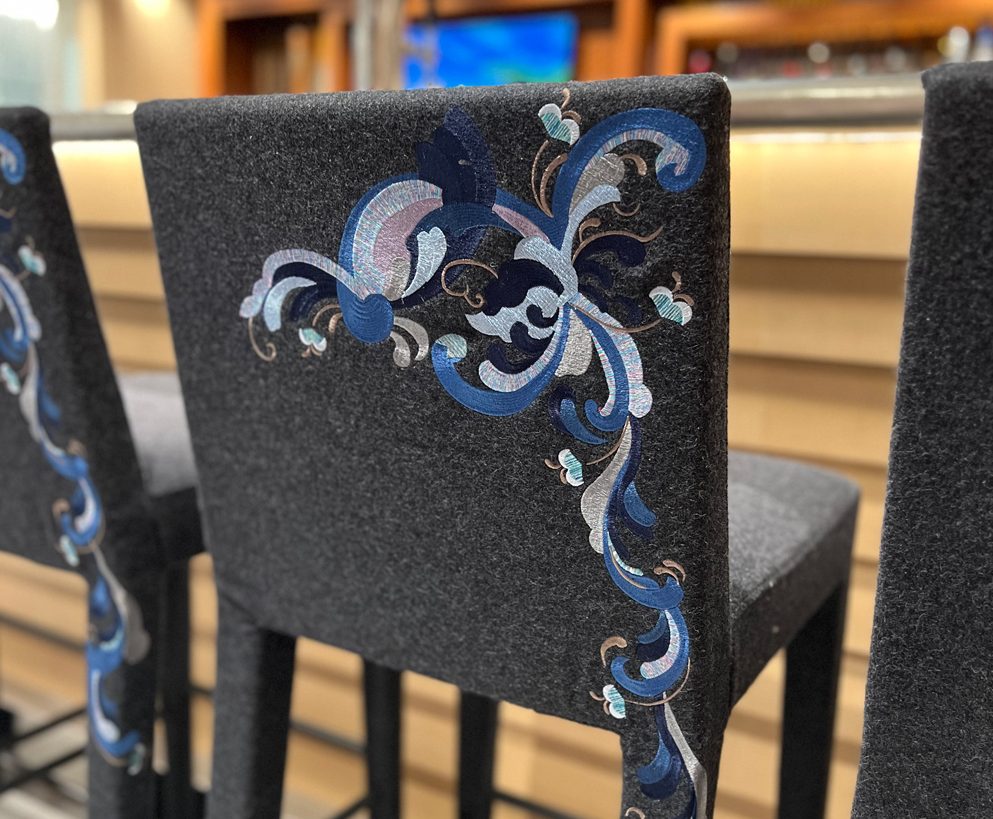 But it was perhaps the fine attention to detail that was mesmerising, from the braided cotton macramé window coverings in the Living Room, to the colourful fine needlework on the black bar stools also here, wrought iron wall art in the Wintergarden and Lanai, to the sounds of birds chirping in the public restrooms throughout the ship. Yes, who would have thought a visit to the loo would be so serene? And LATTE‘s not one to take photos in the bathroom, but the beautiful wooden motif in the restrooms was also stunning.