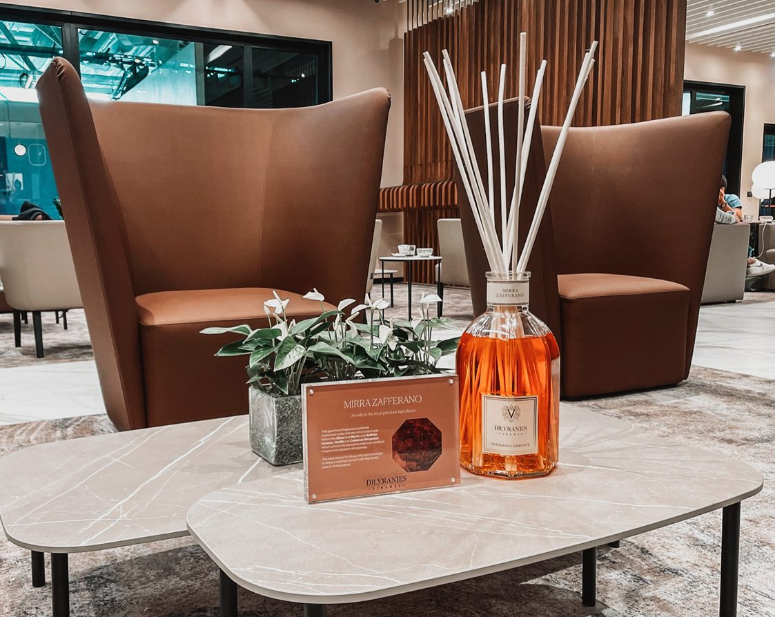 Guests can also enjoy the exquisite home fragrance diffusers of Dr Vranjes Firenze, an esteemed Italian fragrance brand that originated in Florence and is renowned for creating unique fragrances that embody the timelessly elegant Italian lifestyle. This collaboration with a luxury fragrance brand adds an enchanting and distinct sensory experience to the lounge, creating a unique and immersive atmosphere of relaxation and indulgence.