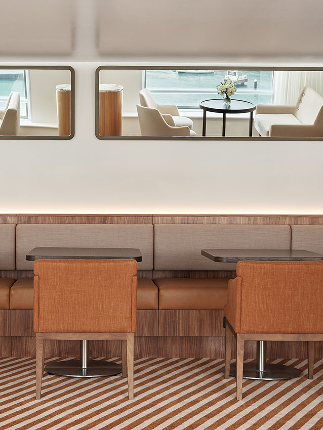 Power outlets are centrally located near all seating, with high-speed Wi-Fi available within the Club, allowing guests to work from the hotel and stay connected online.