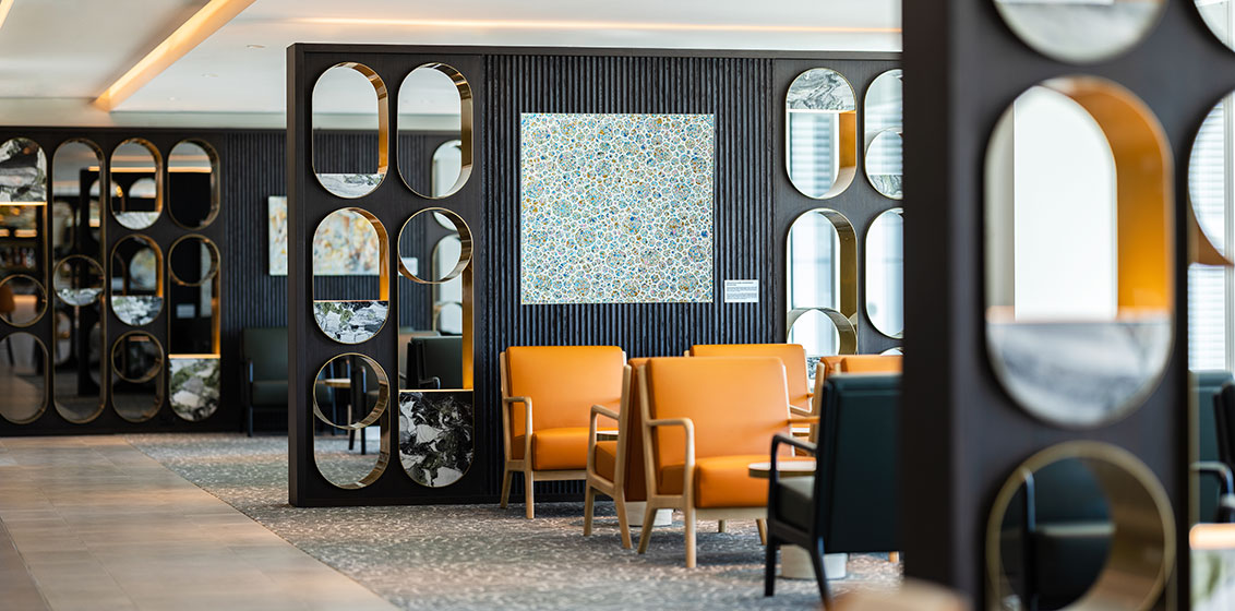 With sustainability in mind, single-use plastics have been eliminated, the lighting scheme is comprised of 100% LED lighting, and the lounge is installed with energy-efficient appliances and water-saving devices.