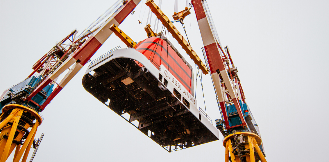 It is an important shipbuilding moment that marks the installation of one of the ship’s most recognisable features.