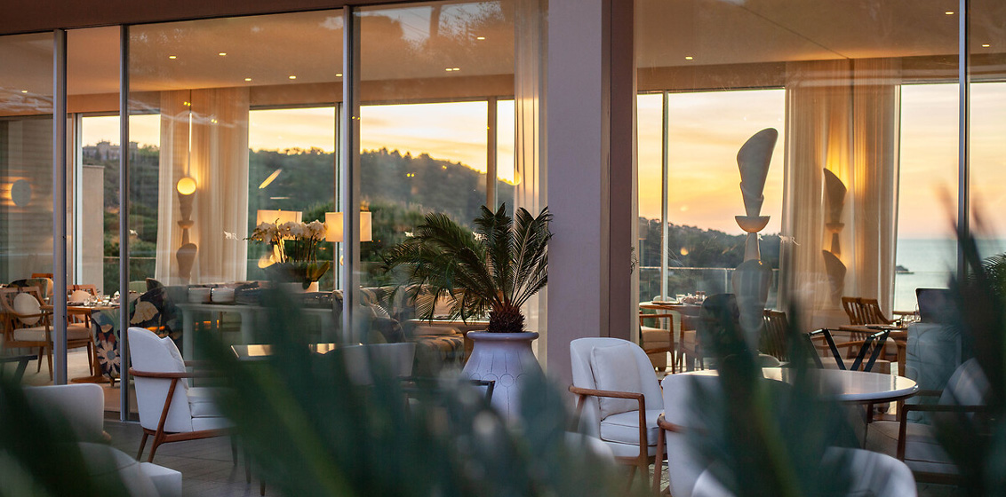 Guests will be greeted in strict compliance with the prevailing health requirements and regulations, particularly in terms of prevention and distancing. In this respect, La Reserve Ramatuelle’s teams are working in close collaboration with the doctors of the Swiss Medical Network clinic group, an affiliated company.Perched between sky and sea, the intimist palace hotel features a new interior design paying tribute to the arty chic spirit pervading the Côte d’Azur of the 1950s. In the lobby, the patio, at the restaurant, the sleek lines, spectacular volumes and white monochromes are enriched with authentic and raw materials, signed works of art and unique custom-made pieces.