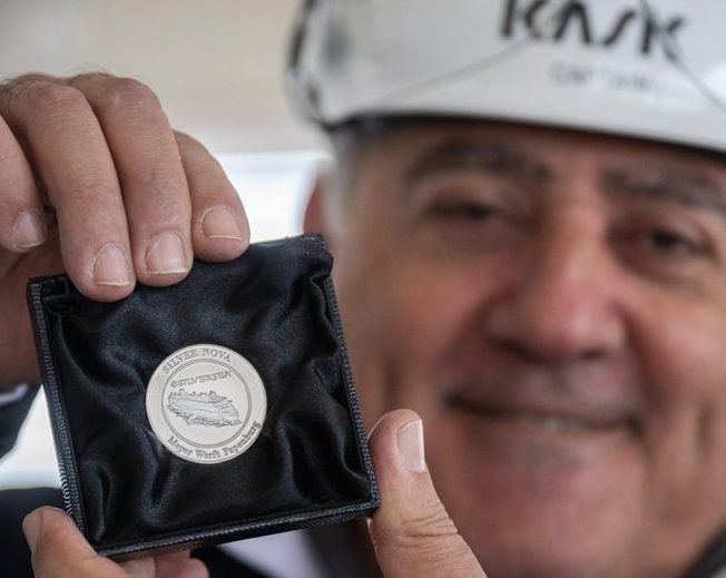 Commemorating the important milestone and in observance of shipbuilding traditions, Captain Cosimo Pontillo welded a special coin to a wall on the pool deck, which will remain visible to the ship’s future guests as a symbol of good luck.