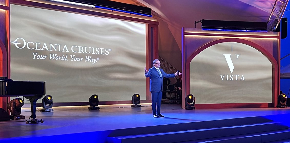 “We’re here to celebrate our spectacular new Vista – the pinnacle of our 20-year history to date,” said Frank A Del Rio. “She’s elegant, she’s stunning, contemporary, while maintaining the classic Oceania DNA that we all love.”