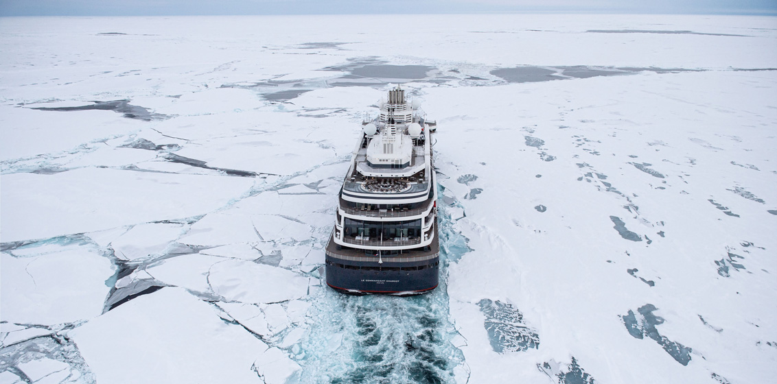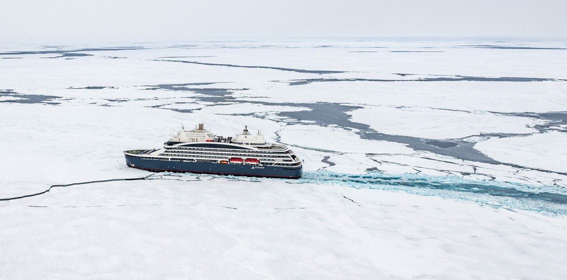 Unveiling its new polar expedition onboard Le Commandant Charcot, the itinerary will take travellers from Alaska to Svalbard through both geographic and magnetic North poles while simultaneously conducting an international scientific mission. Where traditional ships are limited to sailing in existing water passages, Le Commandant Charcot, the world’s only luxury icebreaker, was purposefully designed to make her own transpolar maritime routes and go where no one else has ever been.
