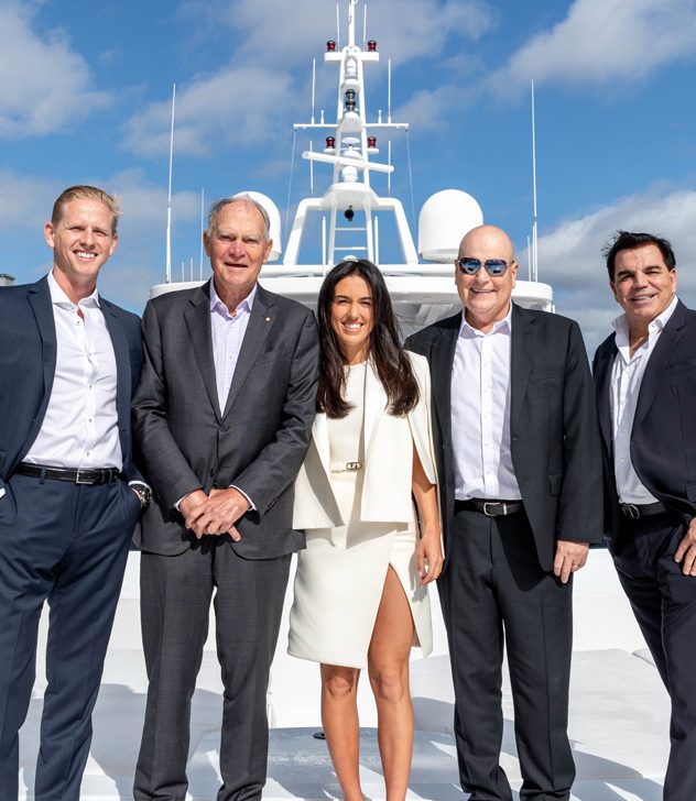 Lead image: Brock Rodwell, Head of Yacht Sales for Ahoy Club, Asia-Pacific; Brian White AO, Chairman, Ray White; Ellie Malouf, CEO Ahoy Club; Rick Rodwell, CEO, Ray White Marine; and Ian Malouf, Managing Director, Ahoy Club.